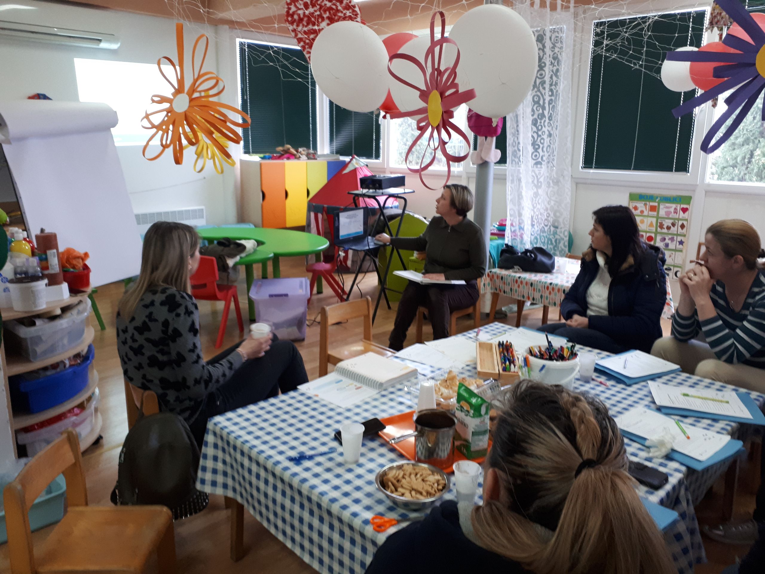 zajednički uče i pružaju međusobnu podršku koja su se pokazala korisnom za jačanje kompetentnosti roditelja i djeteta. Ovo je 4. ciklus radionica koji se u našem vrtiću provodi od 2014.godine. Roditelji se imaju priliku nastaviti družiti i razmjenjivati iskustva u Klubu roditelja.