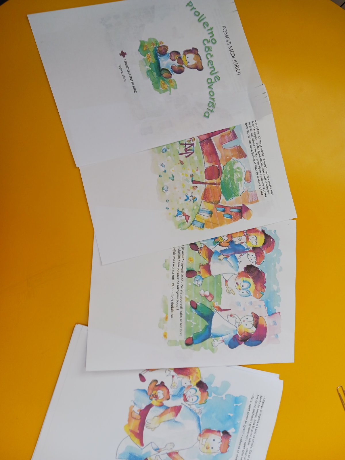Uz priču o medu Jurici djeca su došla do rješenja što napraviti kad se ozlijede. Koga pozvati, kako sanirati ranu, kako se koriste gaze i zavoji - s velim interesom su uvježbavali uz voditelje i odgajatelje.