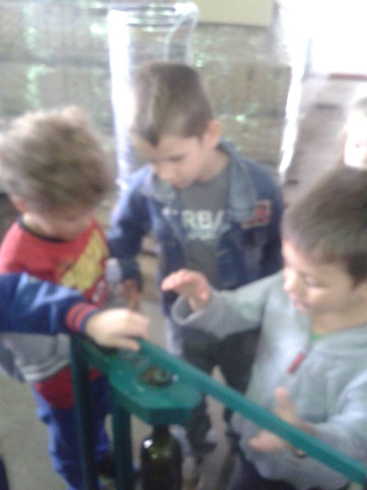 Pokazao nam je kako radi presa i melje grožđe. Gdje odlazi vino,a gdje ostatak grožđa. Pokazao nam je i vinski podrum te način na koji se pune boce vinom. Isprobali smo i sami flaširati vino. Na kraju smo se malo provozali na viljuskaru.